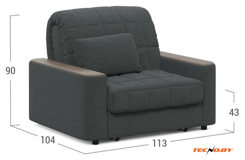 кресло-кровать, спальное место 202x80, сиденье: ткань, серый