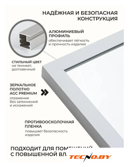 68.5x91.5 см, пластик, прямоугольная форма, установка настенная, белый, подсветка, сенсорное управление