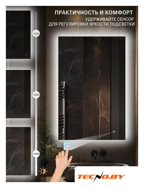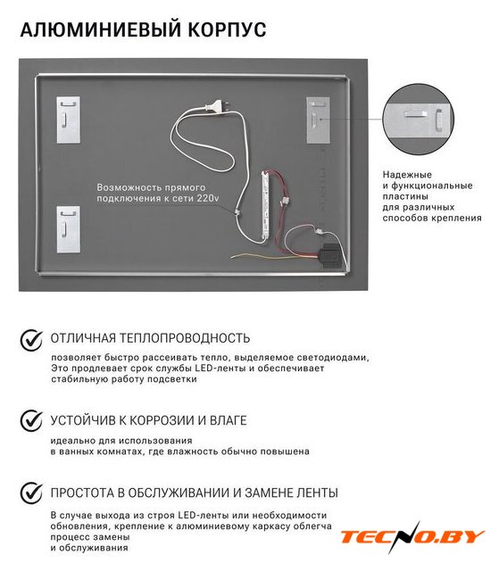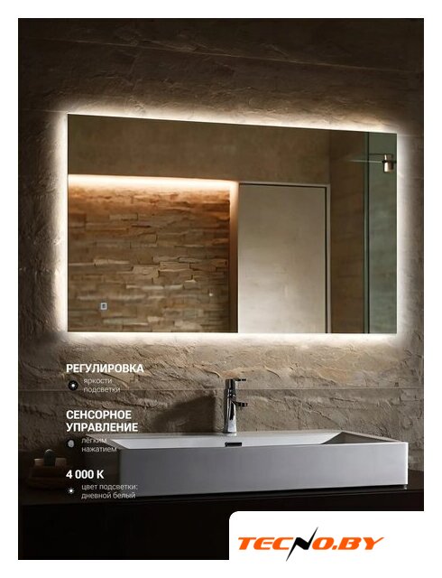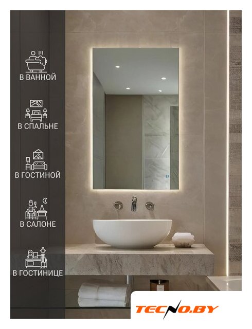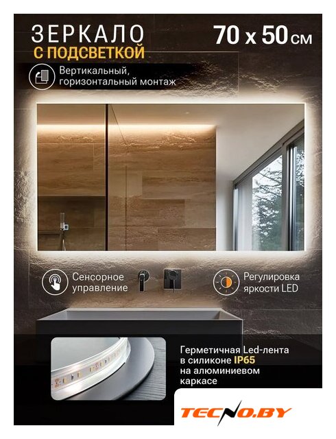 50x70 см, пластик, прямоугольная форма, установка настенная, подсветка