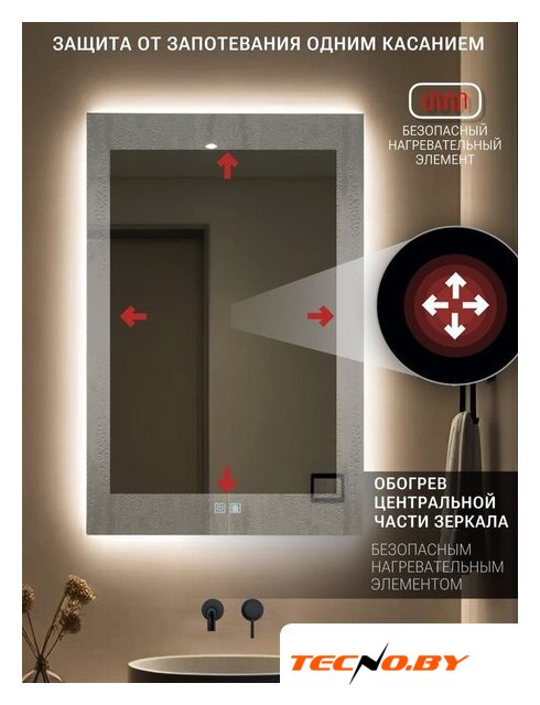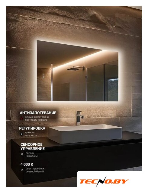 50x70 см, прямоугольная форма, установка настенная, подсветка, сенсорное управление