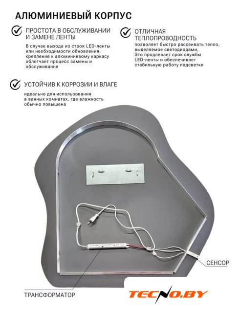 76x92 см, нестандартная форма, установка настенная, подсветка