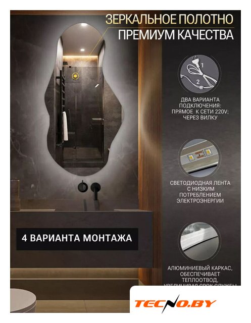 70x90 см, прямоугольная форма, установка настенная, подсветка