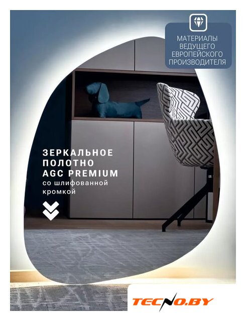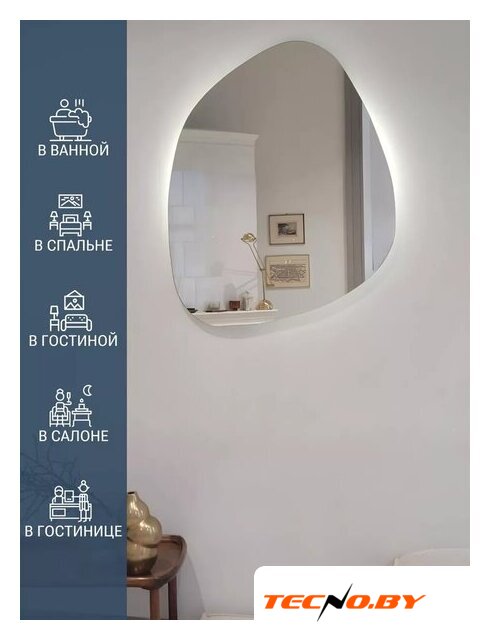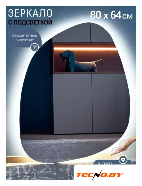 50x70 см, металл/стекло, прямоугольная форма, установка настенная/настольная, черный, подсветка, сенсорное управление
