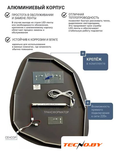 | Комплектация | крепеж, трансформатор, шнур с вилкой, дюбель-крючки, подсветка |