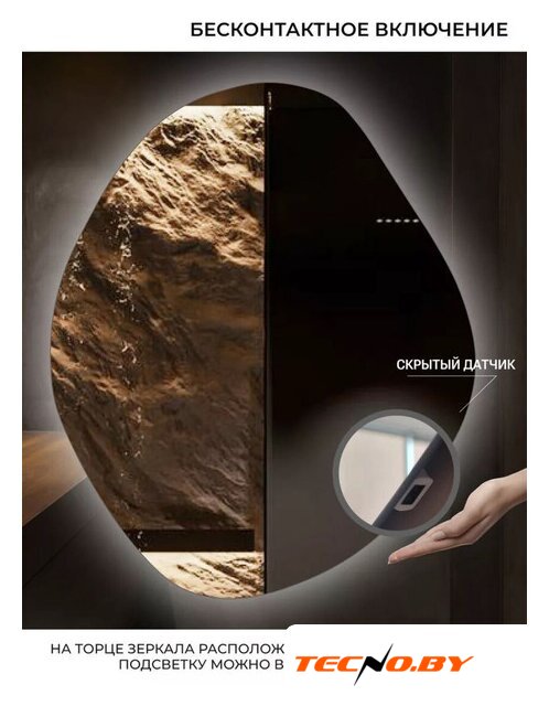 76x92 см, стекло, нестандартная форма, установка настенная, черный, подсветка