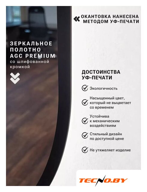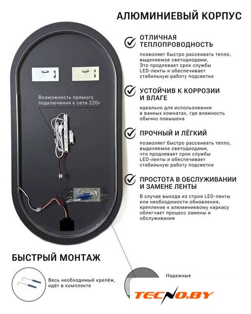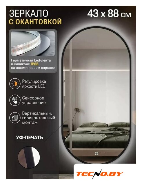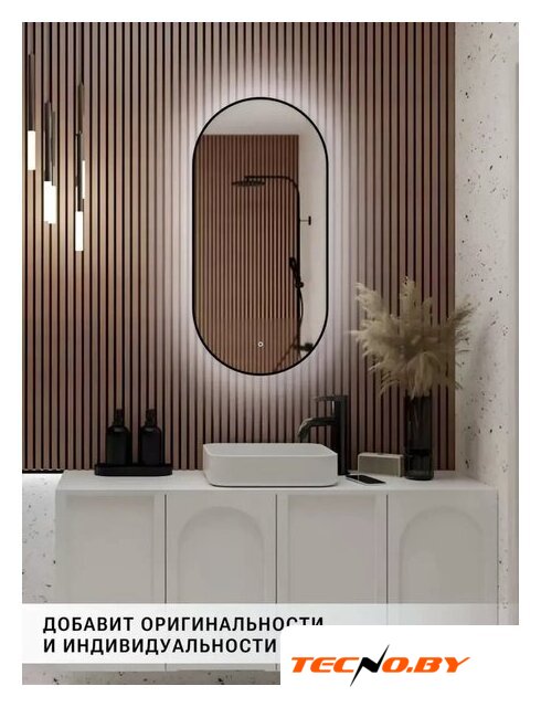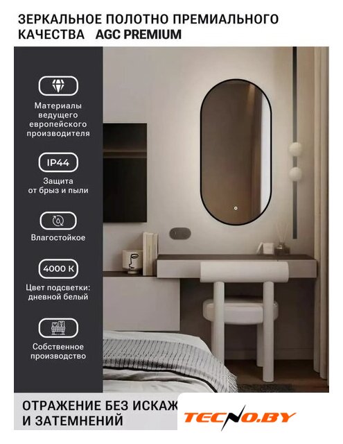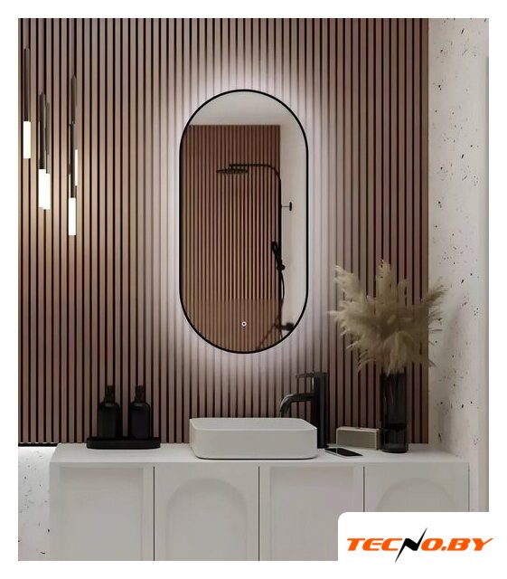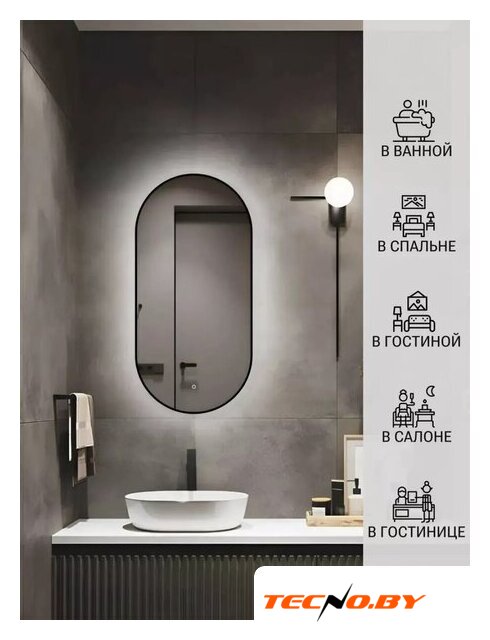 60x60 см, стекло/металл, круглая форма, установка настенная, черный, подсветка, сенсорное управление