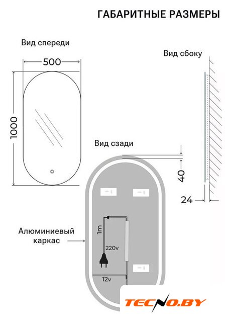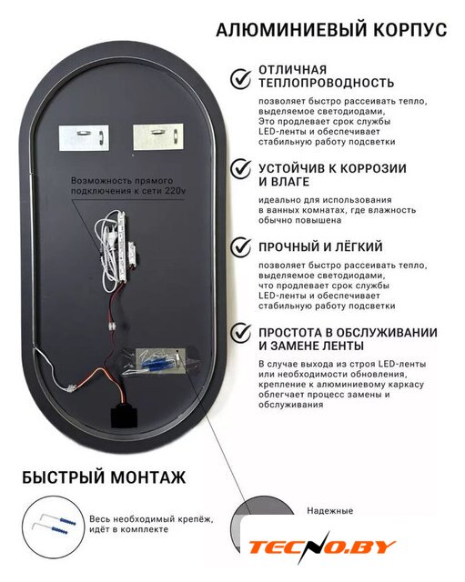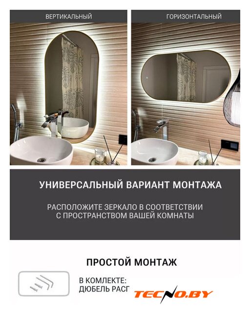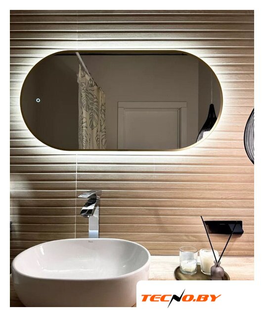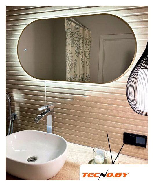 45x77 см, без рамы/стекло, нестандартная форма, установка настенная, зеркальный, подсветка, сенсорное управление