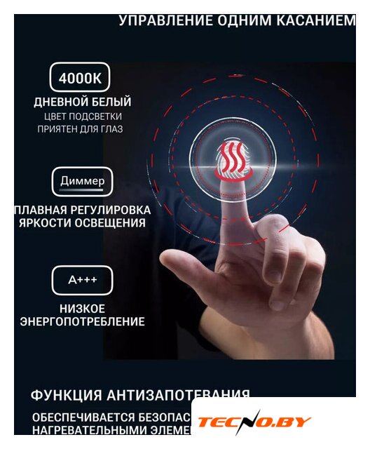 70x68.5 см, прямоугольная форма, установка настенная, подсветка, сенсорное управление