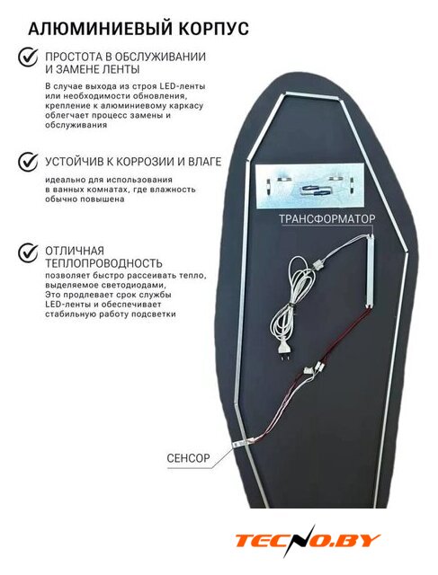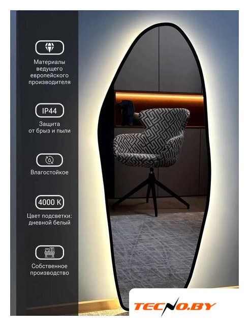 76x92 см, стекло, нестандартная форма, установка настенная, подсветка