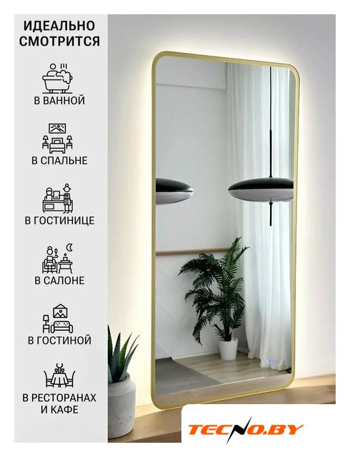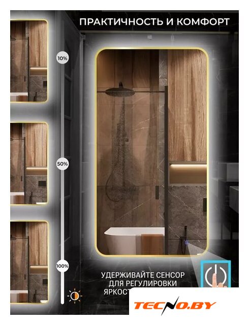 60x80 см, стекло, прямоугольная форма, установка настенная, черный, подсветка, сенсорное управление