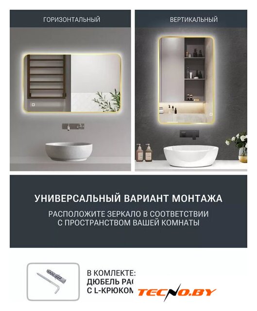 | Комплектация | крепеж, подсветка, трансформатор, шнур с вилкой, дюбель-крючки (2 шт.) |