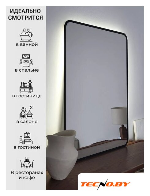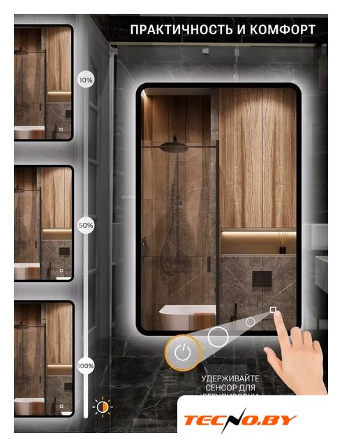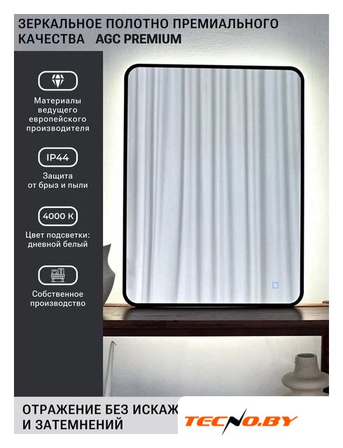 70x68.5 см, прямоугольная форма, установка настенная, подсветка, сенсорное управление