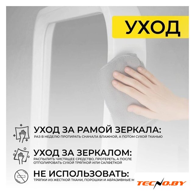 100x80 см, пластик, прямоугольная форма, установка настенная, белый, подсветка, сенсорное управление