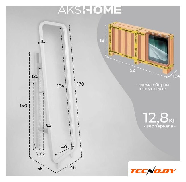 45.5x135 см, стекло, прямоугольная форма, установка настенная, зеркальный