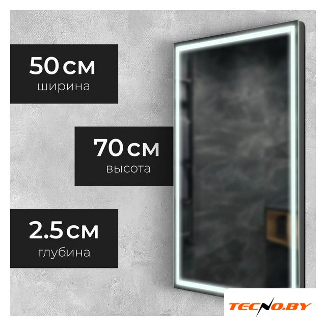 50x70 см, стекло/металл, прямоугольная форма, установка настенная, зеркальный, подсветка, сенсорное управление