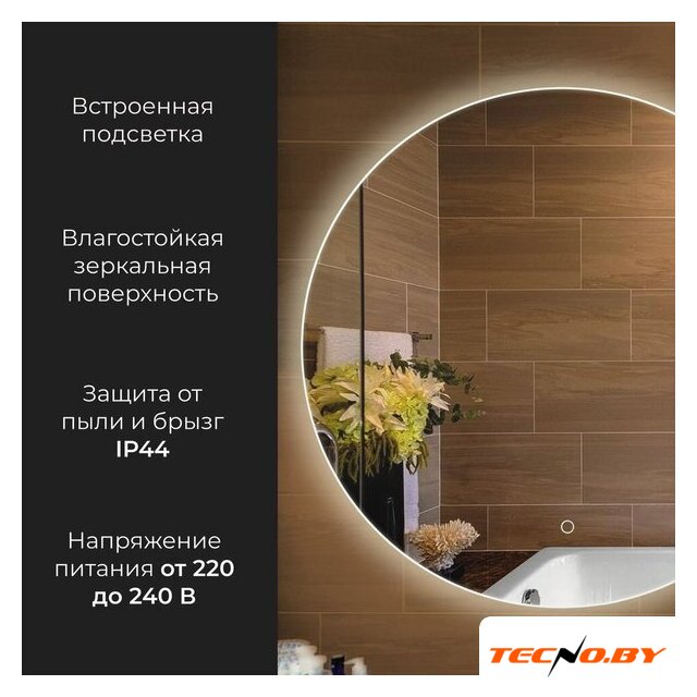 60x80 см, пластик, прямоугольная форма, установка настенная, подсветка, сенсорное управление