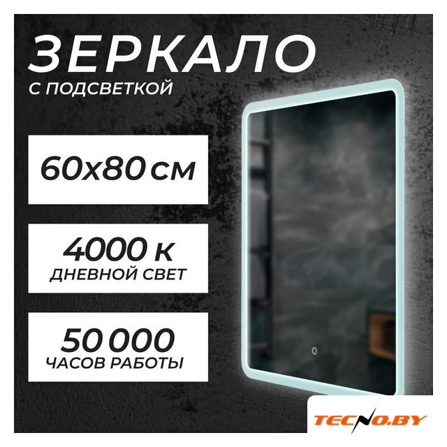 50x70 см, прямоугольная форма, установка настенная, подсветка, сенсорное управление