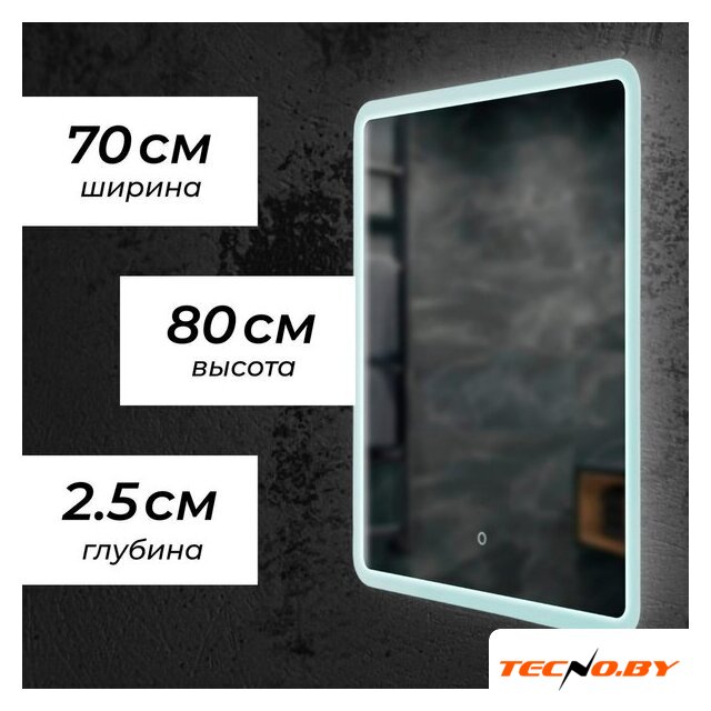 60x80 см, пластик, прямоугольная форма, установка настенная, подсветка, сенсорное управление