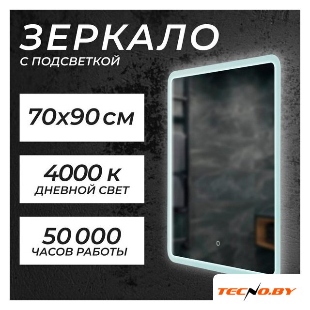 50x70 см, прямоугольная форма, установка настенная, подсветка, сенсорное управление