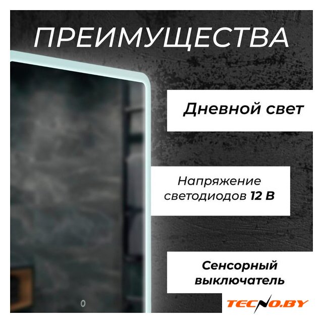 50x70 см, стекло/металл, прямоугольная форма, установка настенная, зеркальный, подсветка, сенсорное управление