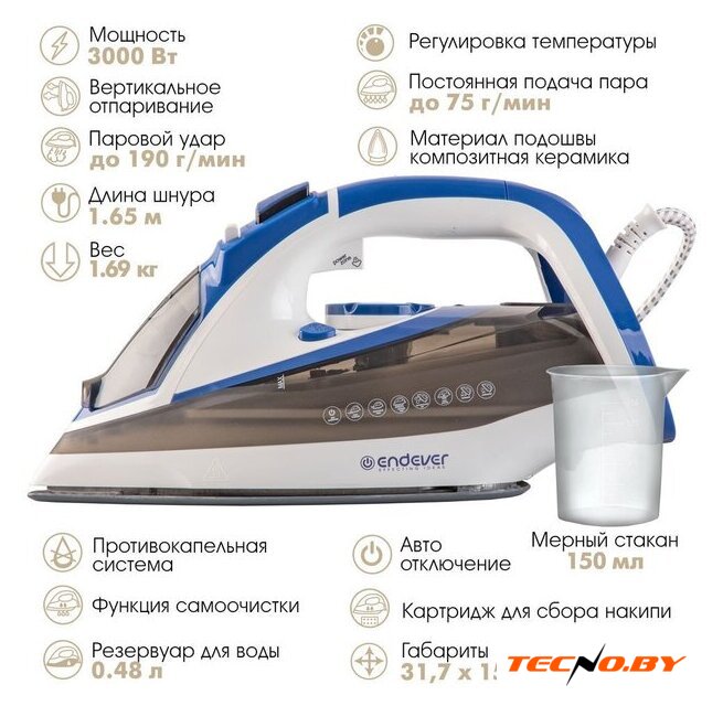 3200 Вт, с пароувлажнением, подошва EasyGlide, постоянная подача пара