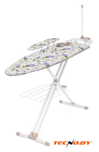 123×46 см, тефлоновый чехол, полочка для белья, полочка для глажения рукавов, розетка, держатель для шнура