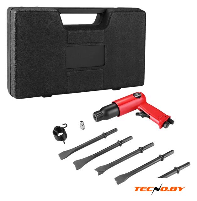| Комплектация | - Пневмомолоток 190мм - 1 шт- Зубила 175мм - 5 шт- Пружинный фиксатор - 1 шт- Ниппель - 1 шт- Кейс |