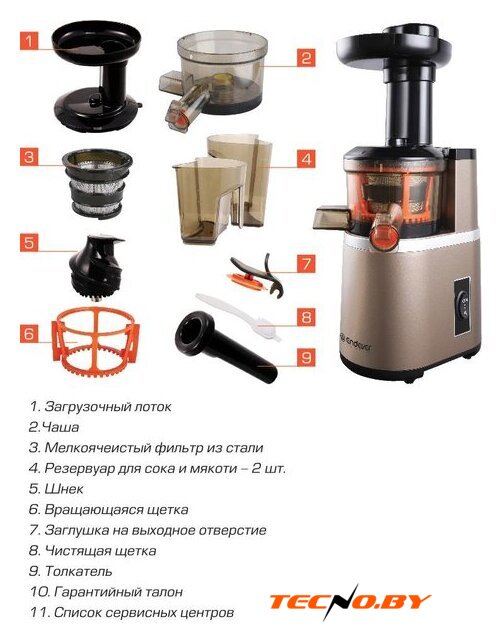 | В комплекте | Чистящая щетка Источник: https://www.endever.su/catalog/juice_extractors/auger_juicer_endever_sigma_92/?sphrase_id=106854 © Endever Техника для уютного дома |