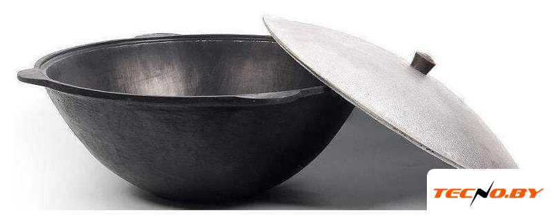 казан для плова, 15 литров, 45 см, чугун, подходит для приготовления на газу, электроплите, стеклокерамике, открытом огне, крышка в комплекте