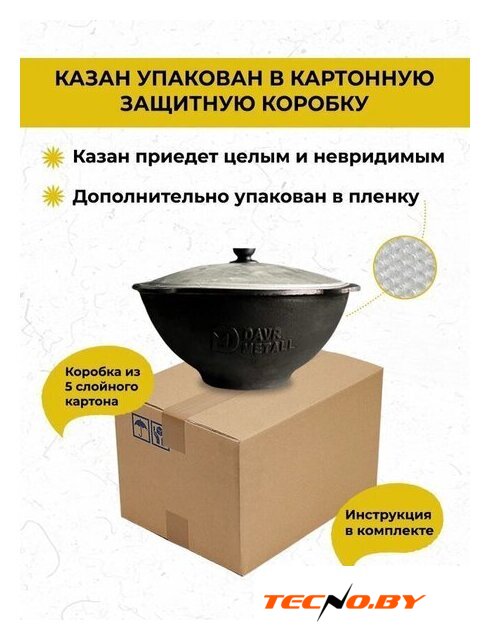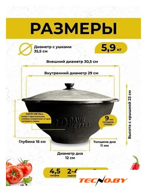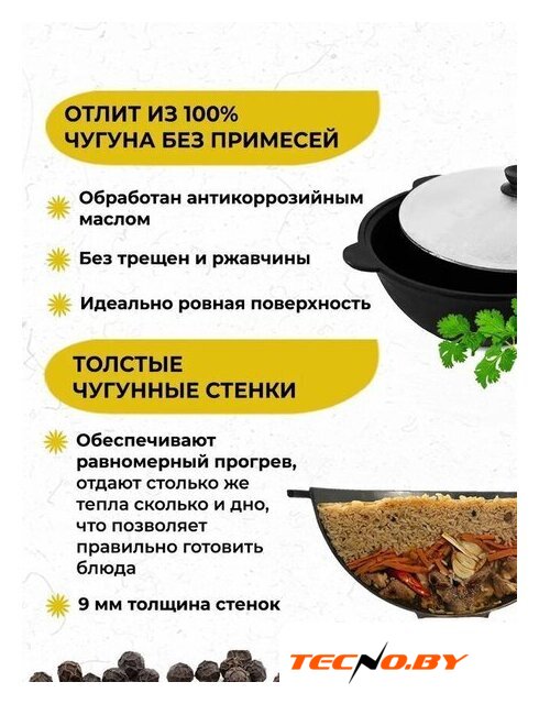 10 литров, 37.5 см, чугун, подходит для приготовления на газу, открытом огне, крышка в комплекте
