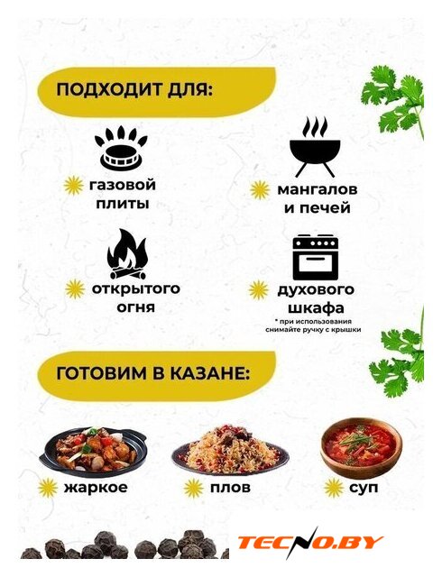 | Для приготовления на | газу, электроплите, стеклокерамике, индукции, открытом огне |