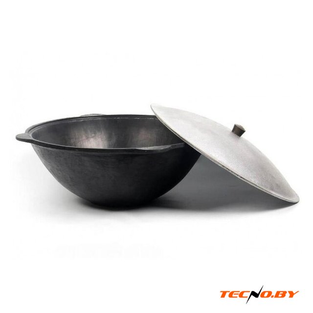 16 литров, 44 см, чугун, подходит для приготовления на газу, открытом огне, крышка в комплекте