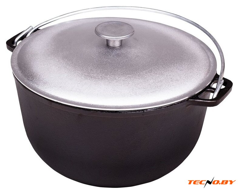 казан для плова, 10 литров, 38 см, чугун, подходит для приготовления на газу, электроплите, стеклокерамике, индукции, открытом огне, крышка в комплекте