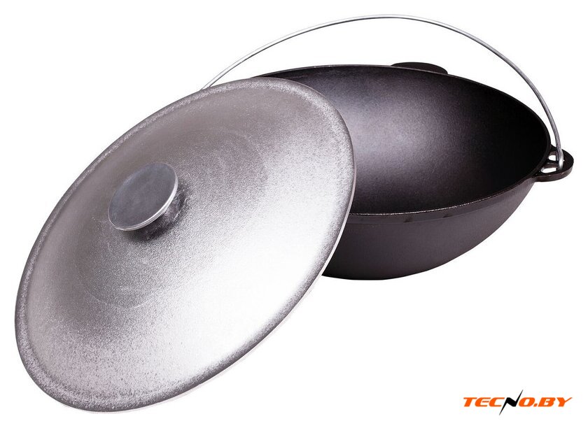 16 литров, 44 см, чугун, подходит для приготовления на газу, открытом огне, крышка в комплекте