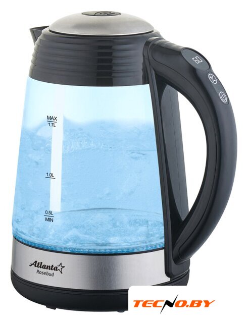 2200 Вт, объем 1.7 л, подсветка, цвет прозрачный/черный