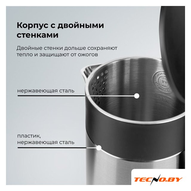 2200 Вт, объем 1.7 л, цвет нержавеющая сталь/черный