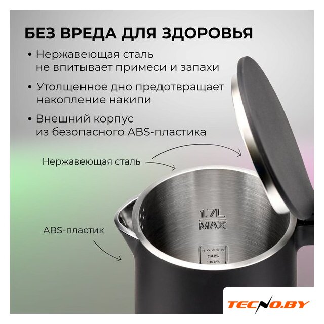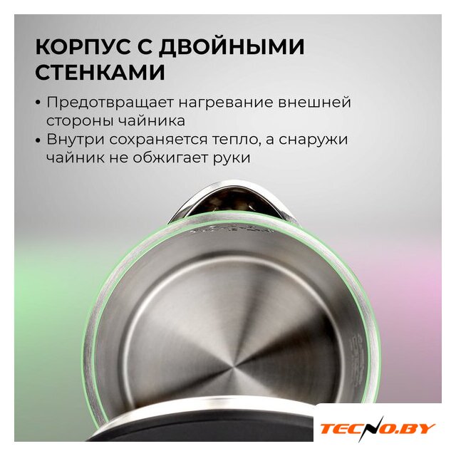 2000 Вт, объем 1.5 л, подсветка, цвет нержавеющая сталь/прозрачный/черный