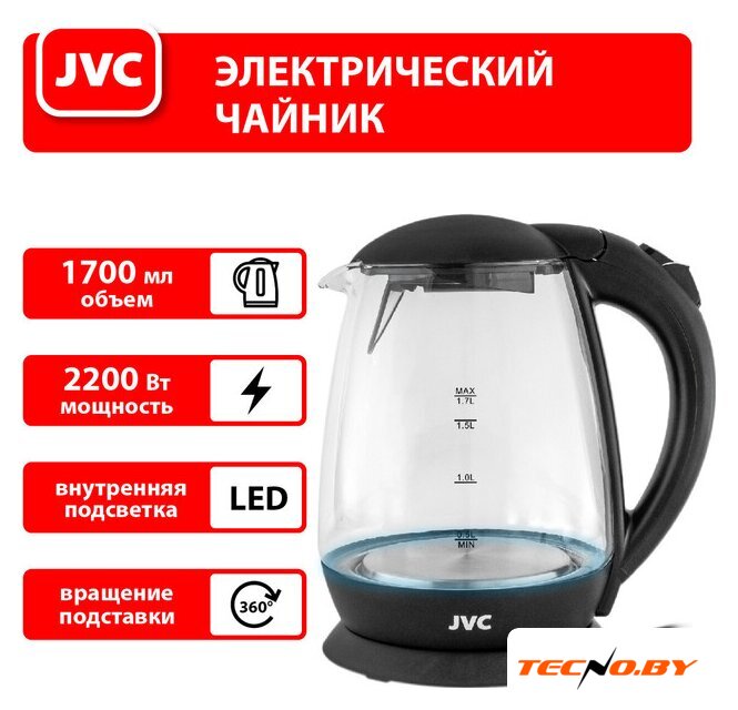 2200 Вт, объем 1.7 л, подсветка, цвет черный