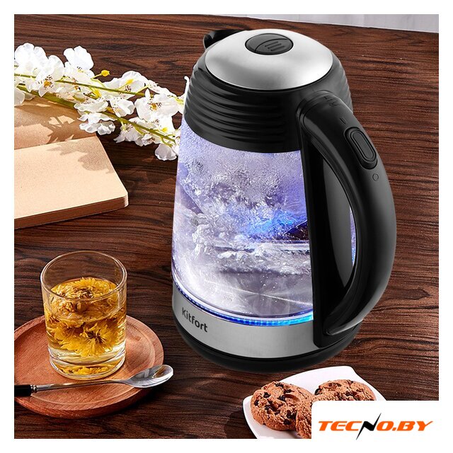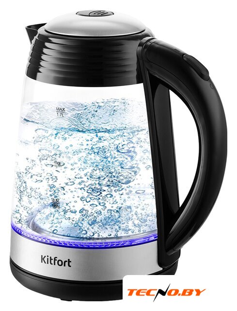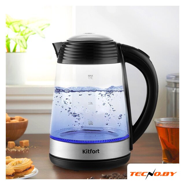 2200 Вт, объем 1.7 л, подсветка, цвет черный/прозрачный