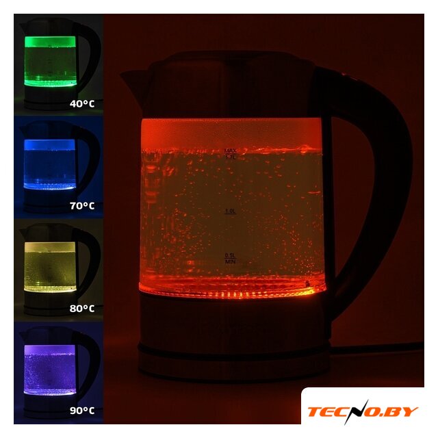2200 Вт, объем 1.7 л, терморегулятор, подсветка, цвет нержавеющая сталь/черный