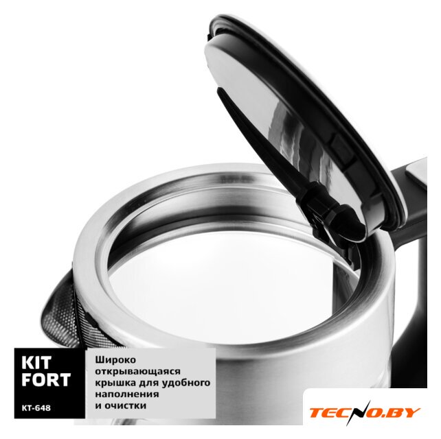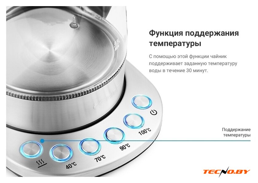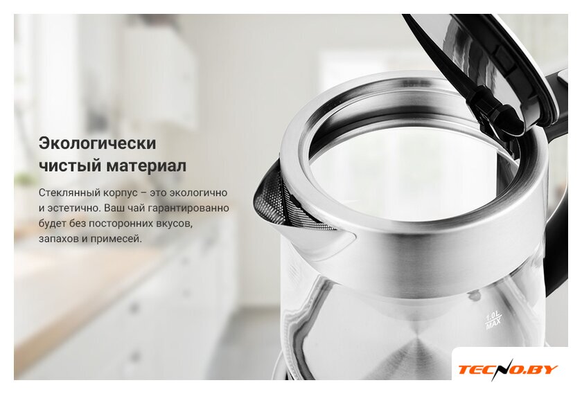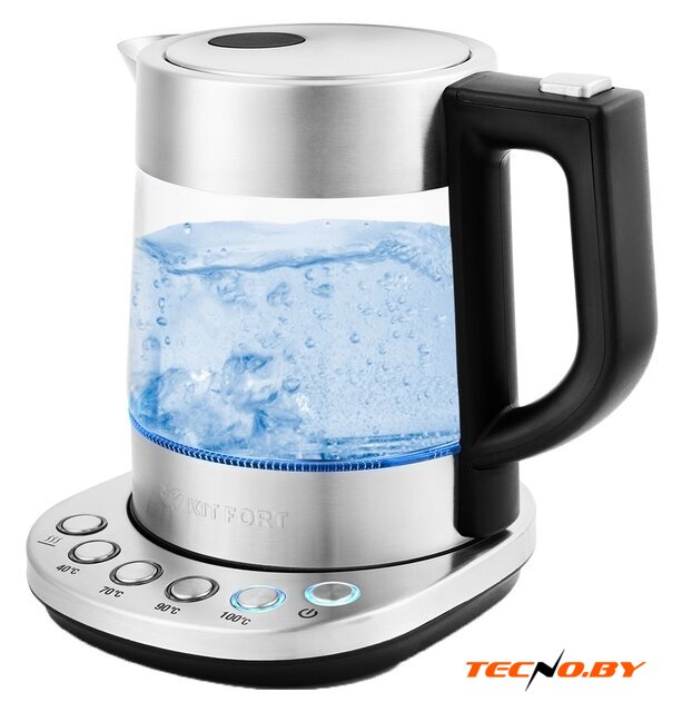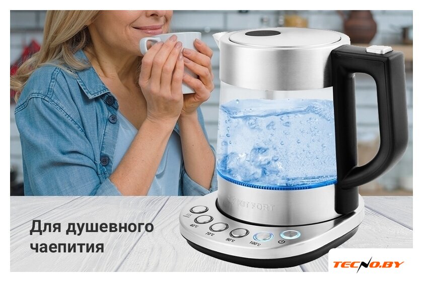 1500 Вт, объем 2 л, заваривание чая, терморегулятор, подсветка, цвет нержавеющая сталь/прозрачный/черный