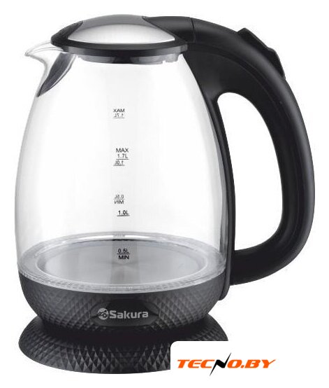 2200 Вт, объем 1.7 л, подсветка, цвет черный/прозрачный