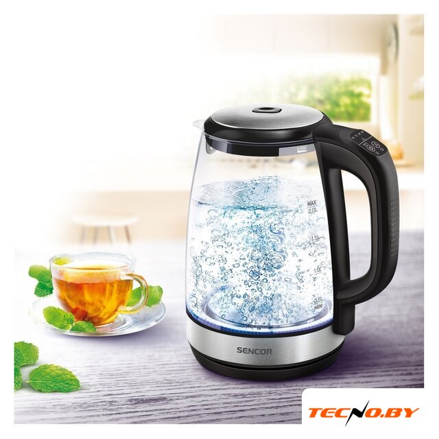 2200 Вт, объем 2 л, терморегулятор, подсветка, цвет бирюзовый/прозрачный