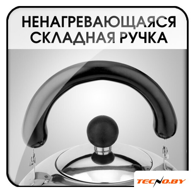 4 л, нержавеющая сталь, полированная нержавеющая сталь, ручка нейлоновая, свисток с рычажком