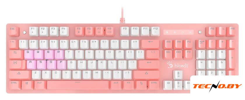 игровая для ПК, механическая, Bloody BLMS Red Plus, ход линейный/тихие, пластик, интерфейс подключения - USB-A, цвет розовый