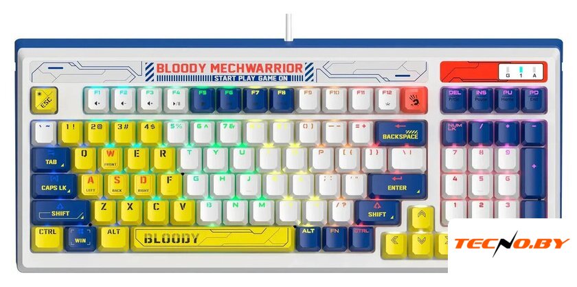 игровая для ПК, механическая, Bloody BLMS Red, ход линейный, пластик, интерфейс подключения - USB, подсветка, цвет белый
