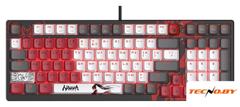 игровая для ПК, механическая, Bloody BLMS Red Plus, ход линейный/тихие, пластик, интерфейс подключения - USB-A/радио/Bluetooth, цвет черный/белый/красный
