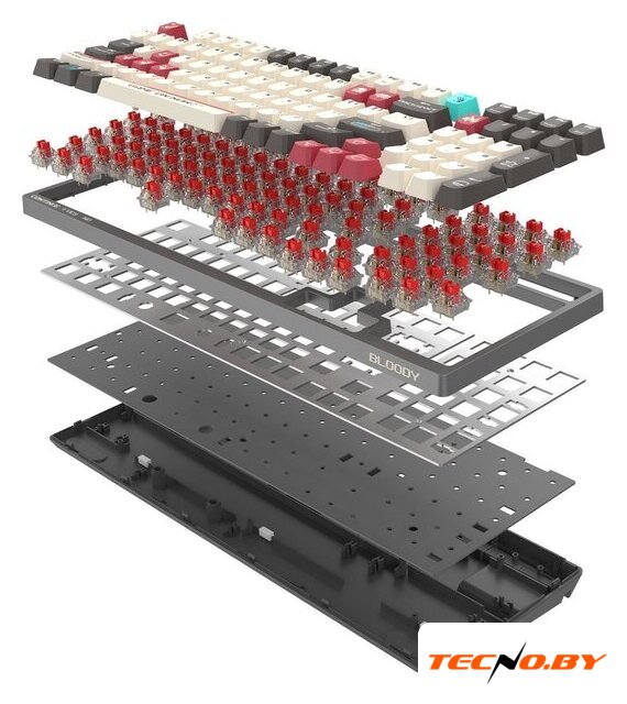 игровая для ПК, механическая, Bloody BLMS Red Plus, ход линейный/тихие, пластик, интерфейс подключения - USB-A/радио/Bluetooth, цвет черный/белый/красный