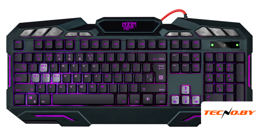 игровая для ПК, мембранная, металлическое основание, интерфейс подключения - USB, подсветка, цвет черный