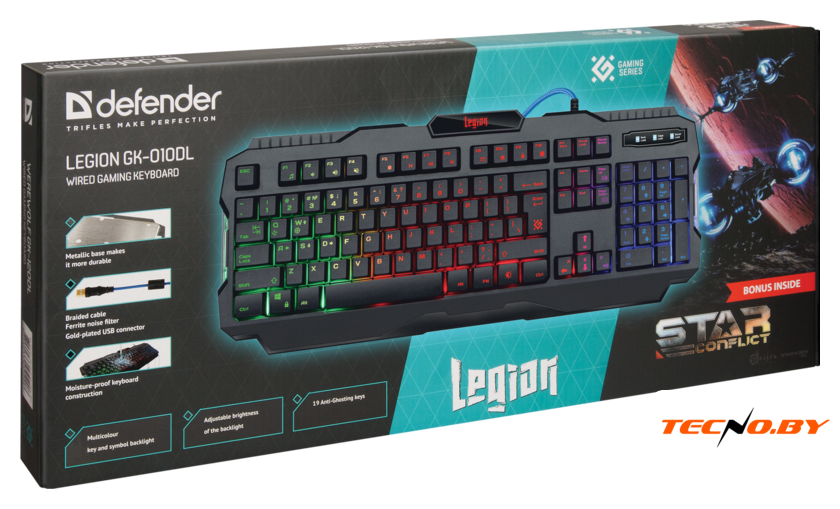 игровая для ПК, интерфейс подключения - USB, подсветка, влагозащита, цвет черный